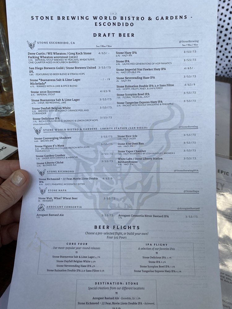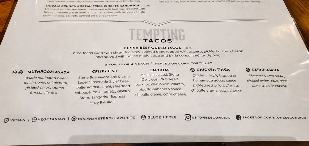 Welcome to Stone Brewing World Bistro & Gardens - Escondido, where culinary creativity meets stunning outdoor settings. This New American-inspired bistro offers a diverse menu that highlights fresh, local ingredients while catering to various dietary preferences, including numerous vegan and vegetarian options.